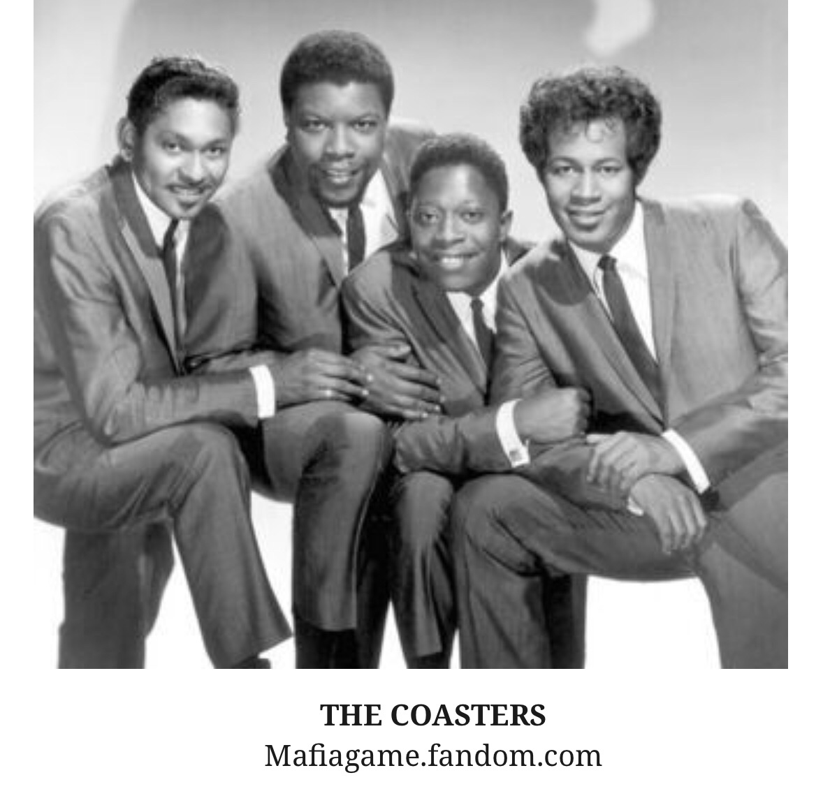 The Coasters are an American rhythm and blues/rock and roll vocal group who had a string of hits in the late 1950s. Members include: J.W. Lance, Primotivo Candelara, Eddie Whitefield and Dennis Anderson. Beginning with “Searchin” (https://youtu.be/CDrxqcxo-Ec) (RQ 4), “Young Blood” (https://youtu.be/e-Exe4YUJyI) (RQ 9) and “Yakety Yak” (https://youtu.be/epCN0f7FTIY) (RQ 10) were their most memorable songs were written by the songwriting and producing team of Leiber and Stoller. Although the Coasters originated outside of mainstream doo-wop, their records were so frequently imitated that they became an important part of the doo-wop legacy through the 1960s.