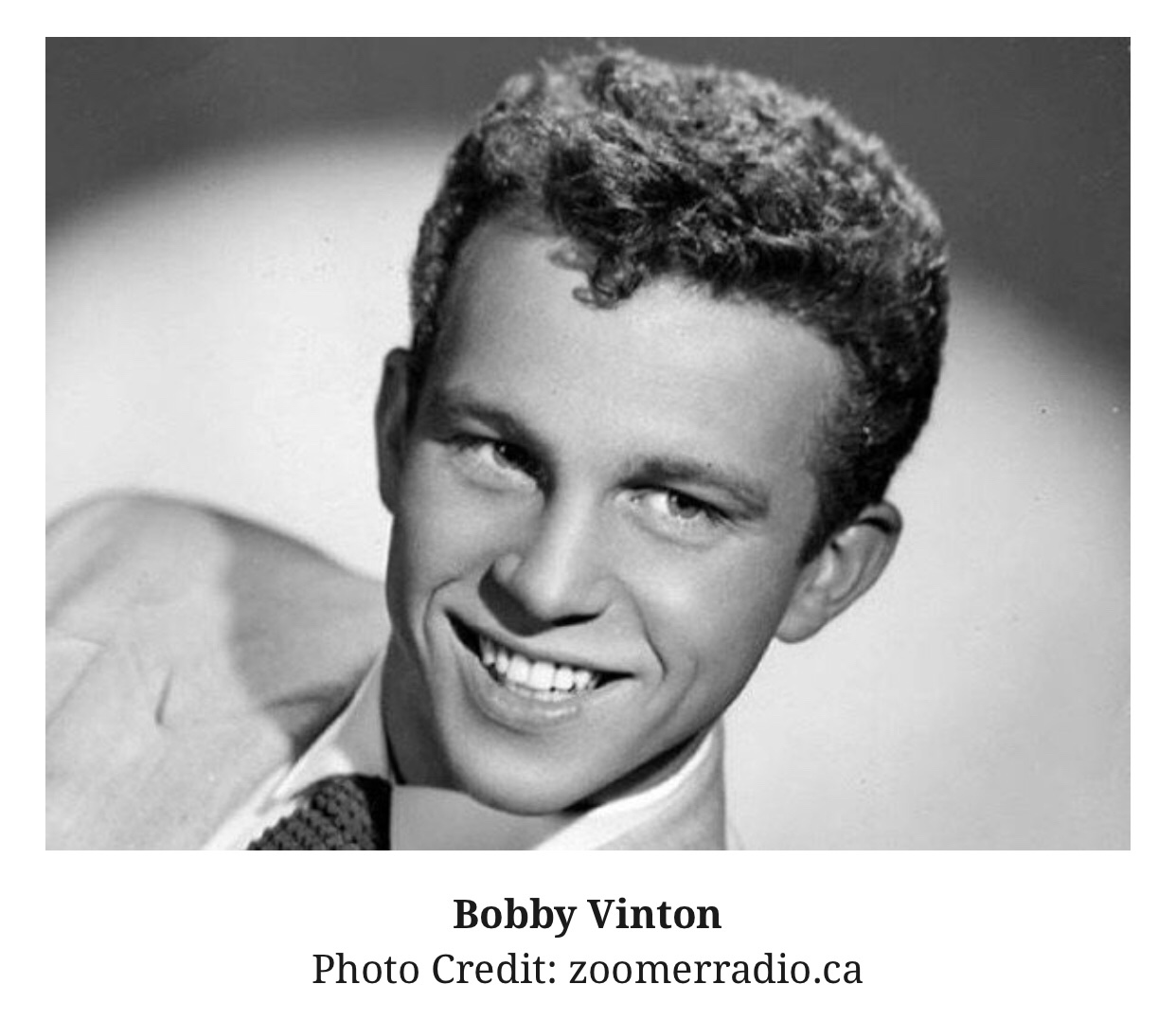 After two years’ service in the United States Army, where he served as a chaplain’s assistant, Vinton was signed to Epic Records in 1960 as a bandleader: “A Young Man With a Big Band”. The break for the Epic Records contract had come after Vinton and his band appeared on Guy Lombardo’s TV Talent Scoutsprogram. However, two albums, Bobby Vinton Dancing At The Hop and Bobby Vinton Plays for his Lil Darlin’s as well as several singles were not successful, and with Epic ready to drop him from its roster, Vinton found his first hit single literally sitting in a reject pile. The song was titled “Roses Are Red My Love,” (https://youtu.be/EYjIdBFpr9E) (RQ 10+). (RQ 10+). Vinton had to do his own promotion for the song; he bought one thousand copies and hired a young woman to deliver a copy of the record and a dozen red roses to every local DJ. It spent four weeks at number one on the Billboard Hot 100. The song was also a hit on the Country and R&B charts. The success of the song pushed Epic to renew Vinton’s contract and change his status from bandleader to solo singer.