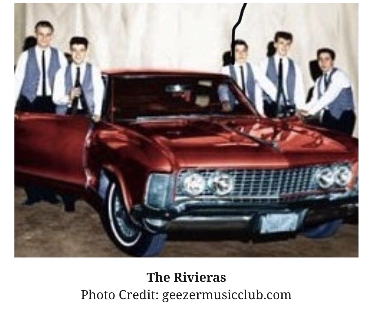 The Rivieras were made up of teenagers from South Bend Central High School. (This band should not be confused with the Coed Records East Coast rhythm & blues band of the same name which had hits in the late 1950s and the early 1960s.) Originally called the Playmates, but they were forced to change their name as there was already a band with that name. They renamed themselves after an automobile, the Buick Riviera. They were one of the many bands in America that became part of the frat rock movement in the early 1960s. The Rivieras consisted of Marty “Bo” Fortson on vocals and guitar, Joe Pennell on guitar, Otto Nuss on organ, Doug Gean on bass guitar, and Paul Dennert on drums. The band had its only hit in 1964 with a cover version of the song “California Sun” (https://youtu.be/Yy57Xdk9u0o) (RQ 10) by Joe Jones. It climbed the pop charts when the No. 1 song was “I Want to Hold Your Hand” by the Beatles.