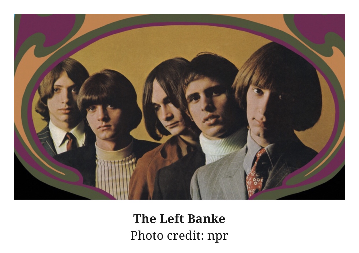 The Left Banke was an American baroque pop band, formed in New York City in 1965. They are best remembered for their two U.S. hit singles, “Walk Away Renee” (https://youtu.be/qDfrW5cWqMU) (RQ 10) and “Pretty Ballerina” (https://youtu.be/m-Ep5x-DETc) (RQ 8). The band often used what the music press referredto as “baroque” string arrangements, which led to their music being variously termed as “Bach-rock” or “baroque rock.”