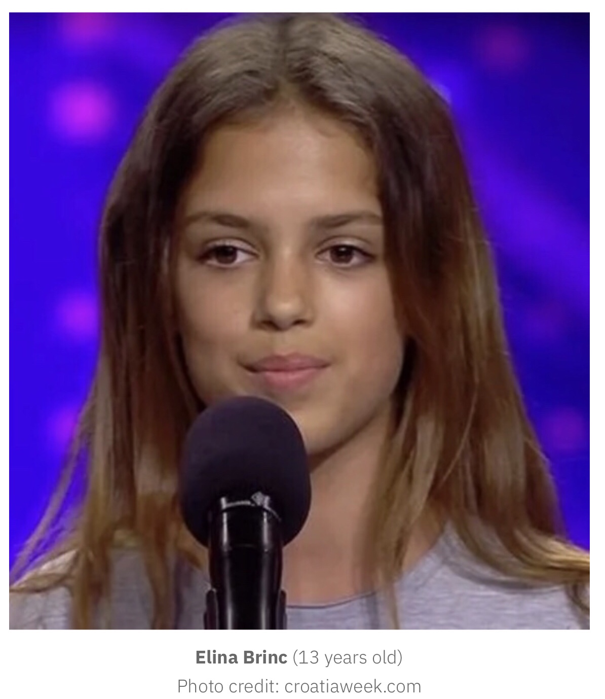 Also, Roberta Battaglia (10) won 4th place at AGT in 2020. Claire Ryann Crosby (a sweet duet with her father) has such a wonderful polished presence for being only 6! Eight-year old Taisiya Skomorokhova’s Russian Voice for Kids finalist very polished performing skills! And, Maria Zakharova looks like a “can’t miss” professional singer at only 10. Alexa Curtis won the 2014 Australia’s VOICE for Kids, then made the AGT quarterfinals, but I would call her a longshot. Here are George, Victoria, Roberta, Alexa’s, Claire’s, and Maria’s snapshots: