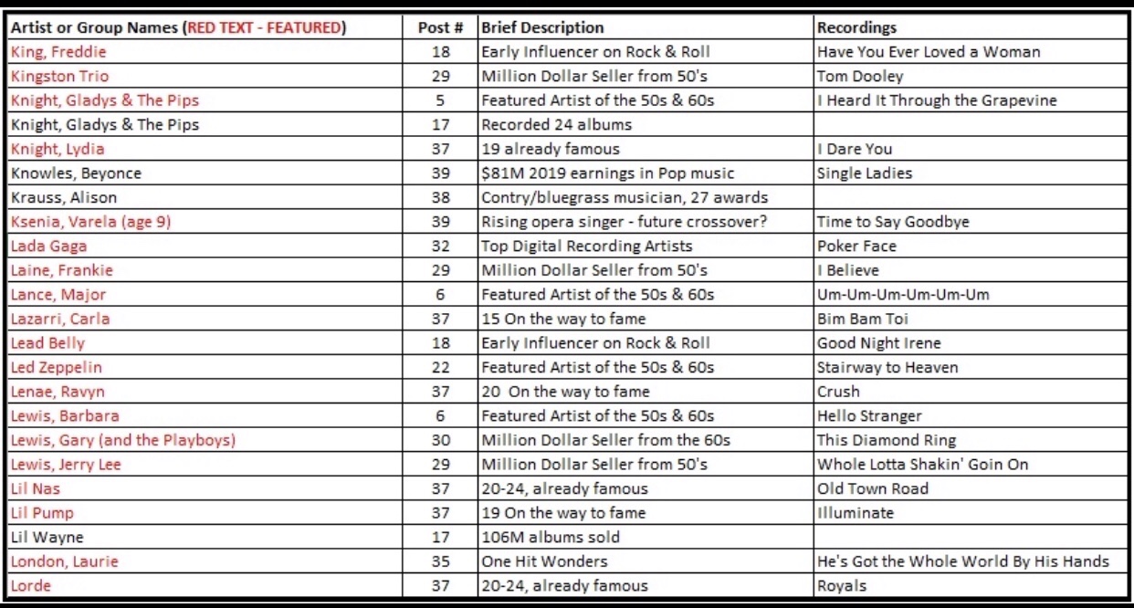Bennett, Joe (and His Sparkletones). 12th Post: Last Named (A-D). “Black Slacks.”