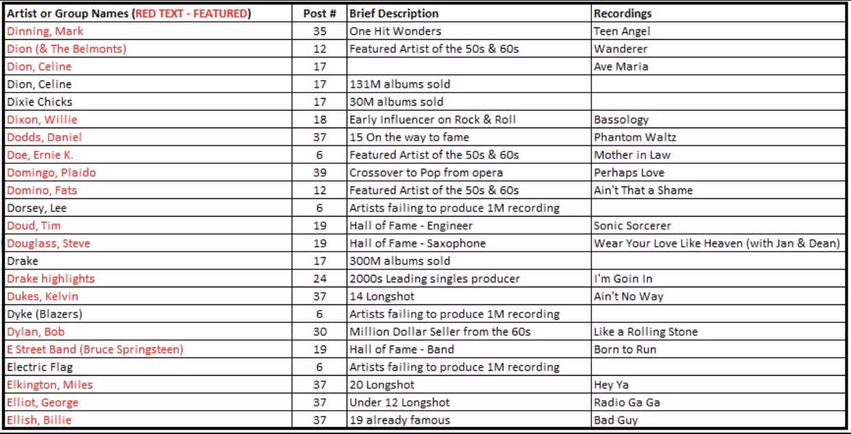 Bandy, Mo. 12th Post: Last Names (A-D). “That’s What Makes the Jukbox Play.”