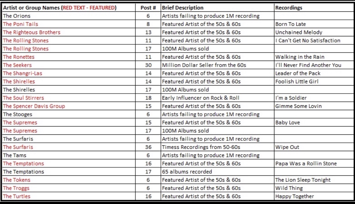 Ward, Robin. 35th Post: One Hit Wonders of the 1950s and 1960s. “Wonderful Summer.”