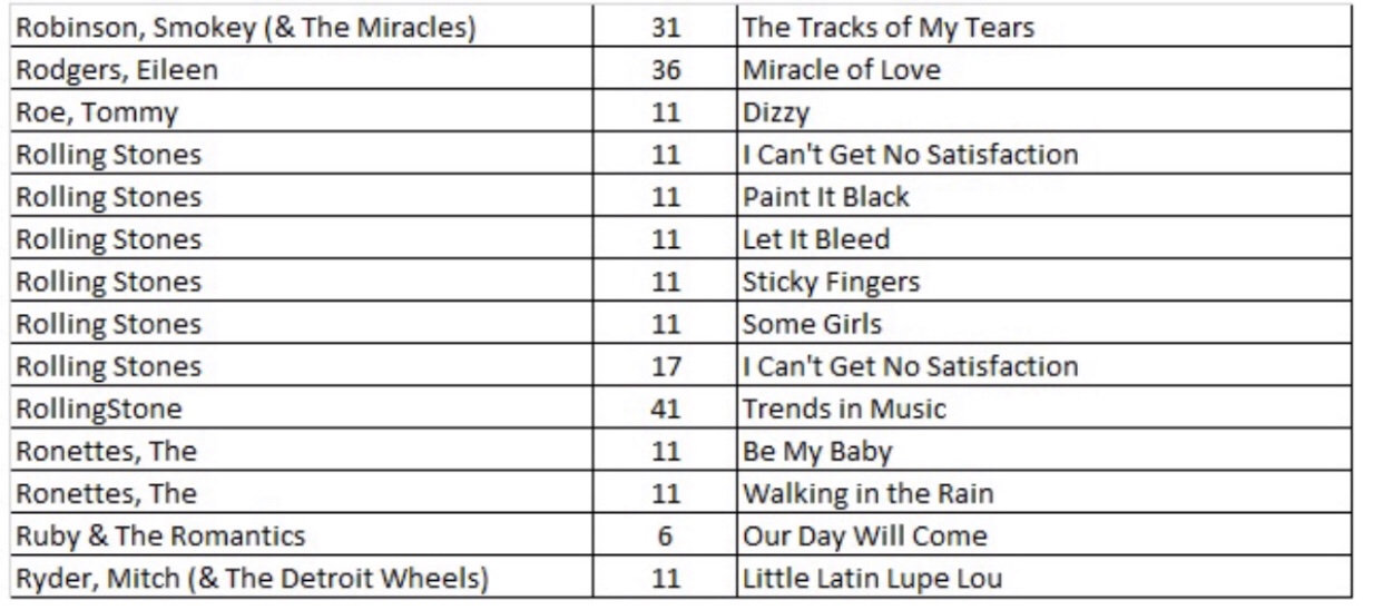 Dating back to December 11, 2003, the RollingStone organization began publishing listings of the Top 500 songs of all time. Their comprehensive data further substantiates the fact that the music from the artists of the 1950s and 1960s is the best ever! I created an Excel spreadsheet from their song data: https://www.rollingstone.com/music/music-lists/500-greatest-songs-of-all-time-151127/sly-and-the-family-stone-hot-fun-in-the-summertime-56860/.