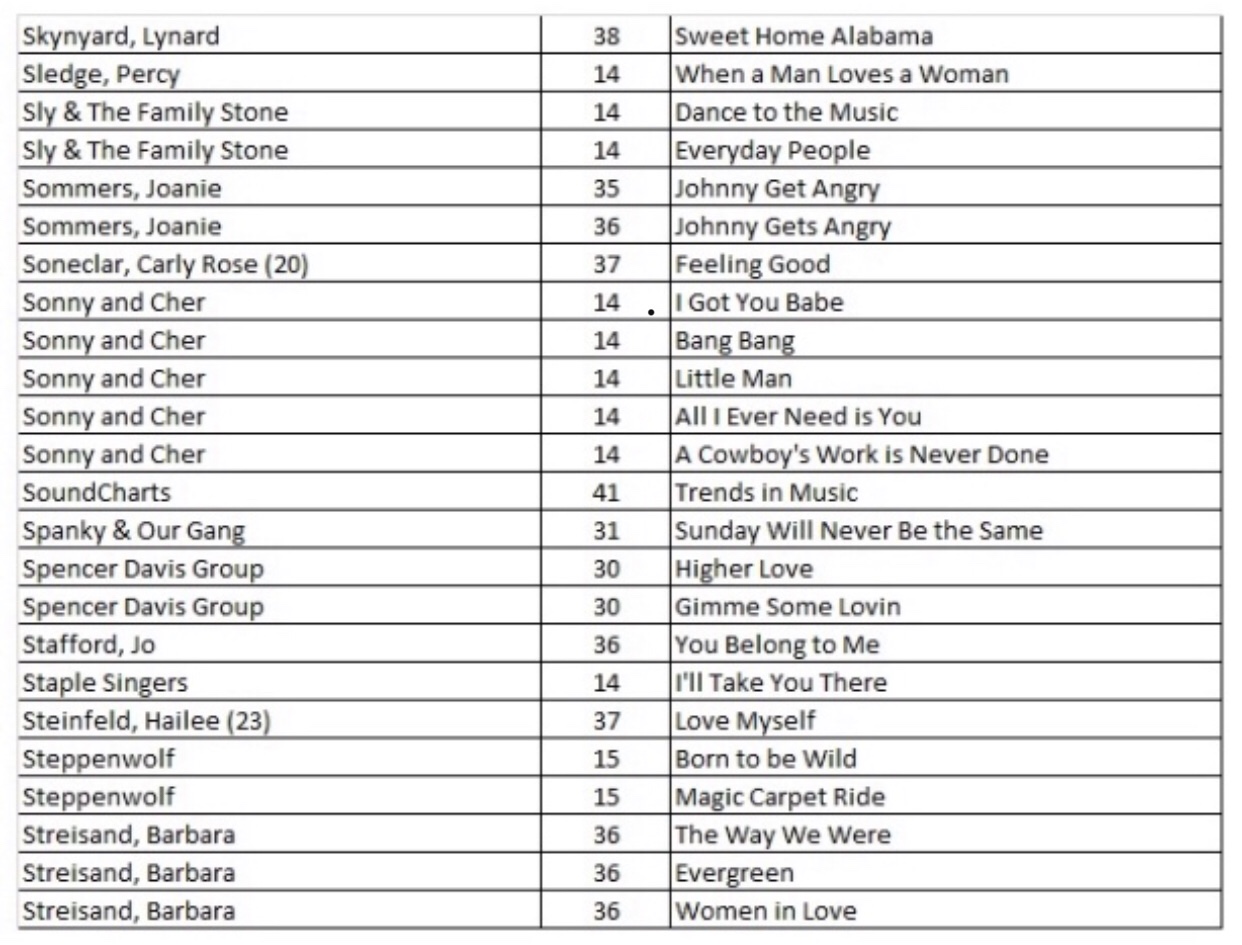 New “10” Adds (Skynyard – Streisand):