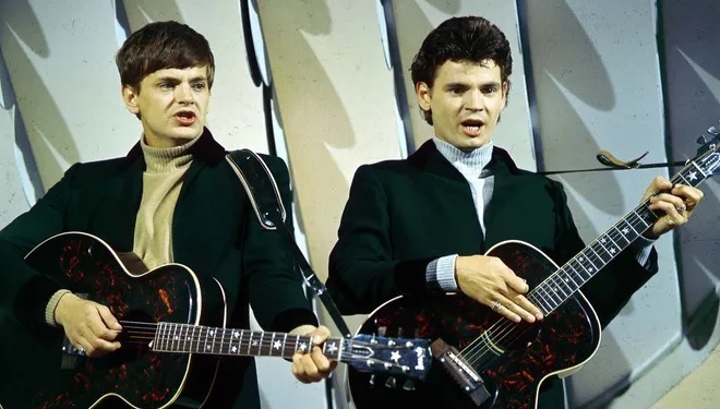 Don (1937-) and Phil (1939-2014) were best known for their use of steel string acoustic guitars and close harmony singing. Their first No1 hit was “Bye-Bye Love” (https://youtu.be/LRyrWN-fftE) (RQ 10) in 1957. In 1958, two other songs were made famous: “Wake Up Little Suzie (https://youtu.be/LojqhHnmyvc) (RQ 8) and All I Have to Do is Dream” (https://youtu.be/tbU3zdAgiX8) (RQ 7). The brothers enlisted in the Marine Corps in 1961 and their song output dropped off. Inducted into the Rock and Roll HOF in 1986. Then, in 2001, they became a part of the Country Music HOF.
