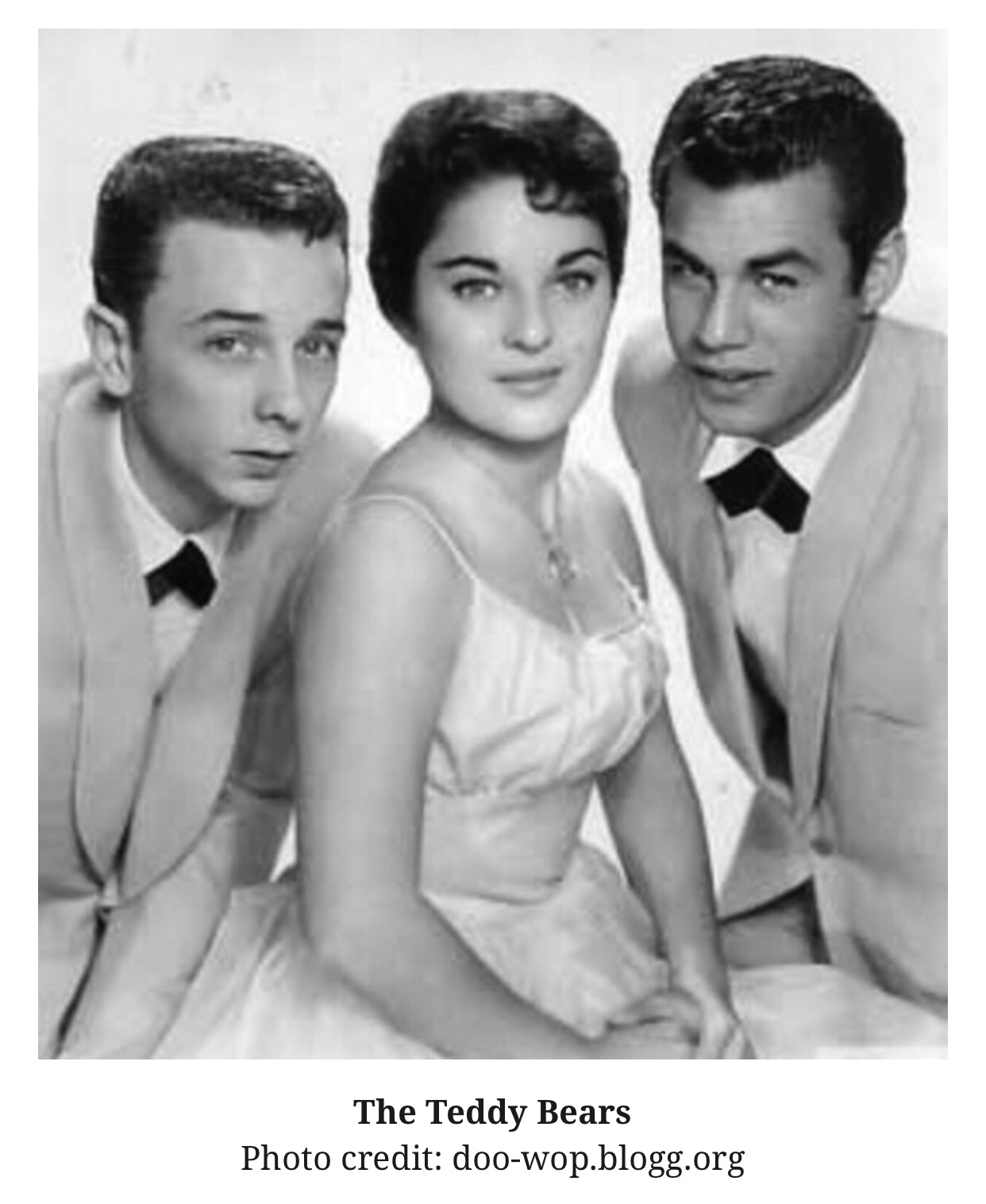 Spector was not the only Teddy Bear who went on to a career after the group broke up. Harvey Goldstein became a certified public accountant. Annette Kleinbard continued to write and record songs, and changed her name to Carol Conners. Among her credits are the Rip Chords hit “Hey Little Cobra”, (https://youtu.be/-rXldHa212I) (RQ 10) and the Academy Awards nominated Rocky theme song, “Gonna Fly Now,” (https://youtu.be/MR6FXpaECY8) (RQ 10+) co-written with Ayn Ribbins. Leib joined the Hollywood Argyles, played guitar on some of Duane Eddy’s records and produced material recorded by the Everly Brothers amongst others.Spector was not the only Teddy Bear who went on to a career after the group broke up. Harvey Goldstein became a certified public accountant. Annette Kleinbard continued to write and record songs, and changed her name to Carol Conners. Among her credits are the Rip Chords hit “Hey Little Cobra”, (https://youtu.be/-rXldHa212I) (RQ 10) and the Academy Awards nominated Rocky theme song, “Gonna Fly Now,” (https://youtu.be/MR6FXpaECY8) (RQ 10+) co-written with Ayn Ribbins. Leib joined the Hollywood Argyles, played guitar on some of Duane Eddy’s records and produced material recorded by the Everly Brothers amongst others.